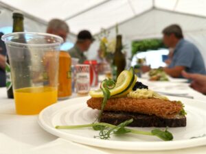 Der blev serveret Sild, smørrebrød, og efterfølgende budt på kaffe og kage. Det blev en hyggelig dag, med masser snak om lystfiskeri og lystfiskerhistorier.